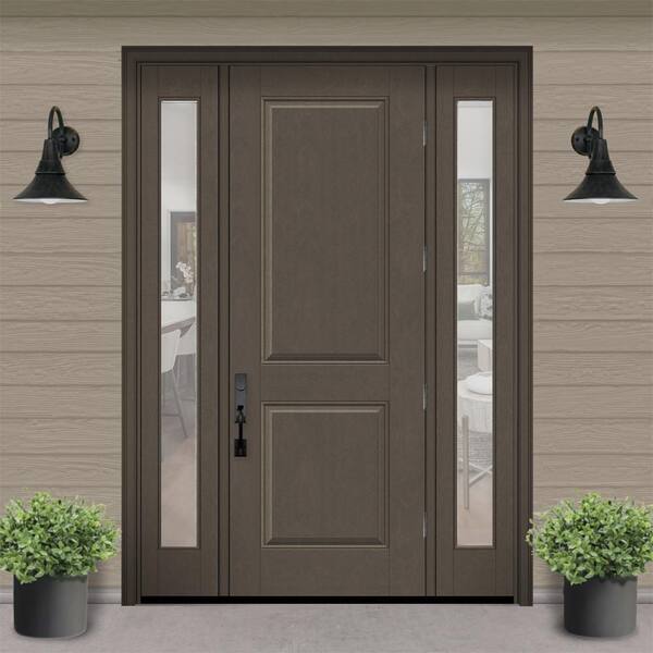 Regency 64 in. x 96 in. 2P Squaretop LHOS Ashwood Stain Mahogany Fiberglass Prehung Front Door w/Clear 12 in. SLs 4-9/16