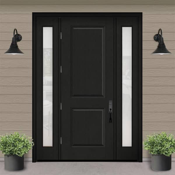 Regency 64 in. x 96 in. 2P Squaretop RHOS Onyx Stain Mahogany Fiberglass Prehung Front Door with Obscure12in. SLs 6-9/16