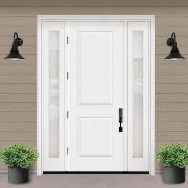 Regency 64 in. x 96 in. 2PSquaretop RHOS Unfinished White Mahogany Fiberglass Prehung Front Door w/Obscure12in.SLs6-9/16