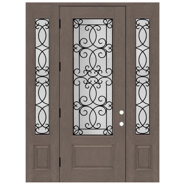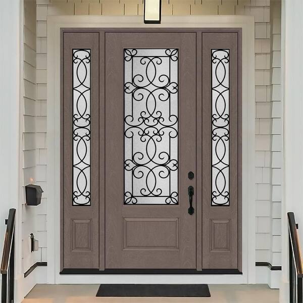 Regency 64 in. x 96 in. 3/4Lite Georgian Decorative Glass RHOS Ashwd Mahogany Fiberglass Prehung Front Door w/12 in.SL