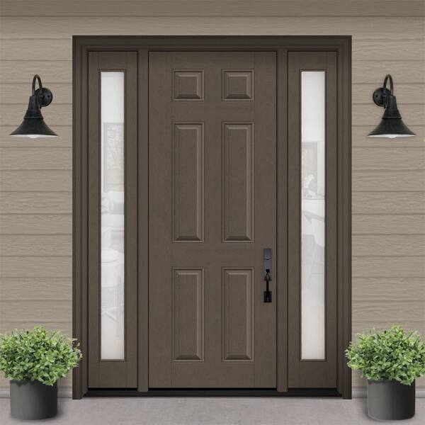 Regency 64 in. x 96 in. 6 Panel LHIS Ashwood Stain Mahogany Fiberglass Prehung Front Door w/Obscure12in. SLs 6-9/16