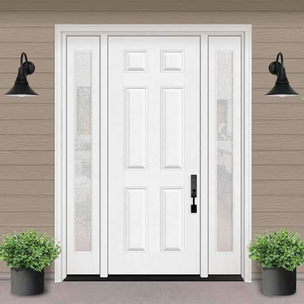 Regency 64 in. x 96 in. 6 Panel LHIS Unfinished White Mahogany Fiberglass Prehung Front Door w/Rain12in. SLs 4-9/16