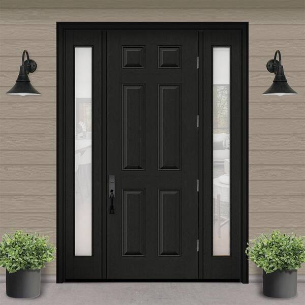 Regency 64 in. x 96 in. 6 Panel LHOS Onyx Stain Mahogany Fiberglass Prehung Front Door w/Obscure12in. SLs 4-9/16