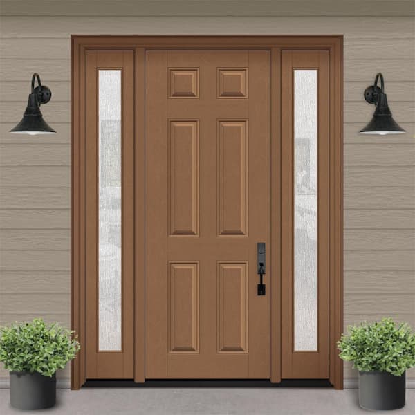 Regency 64 in. x 96 in. 6 Panel RHIS Autumn Wheat Stain Mahogany Fiberglass Prehung Front Door w/Rain12in. SLs 4-9/16