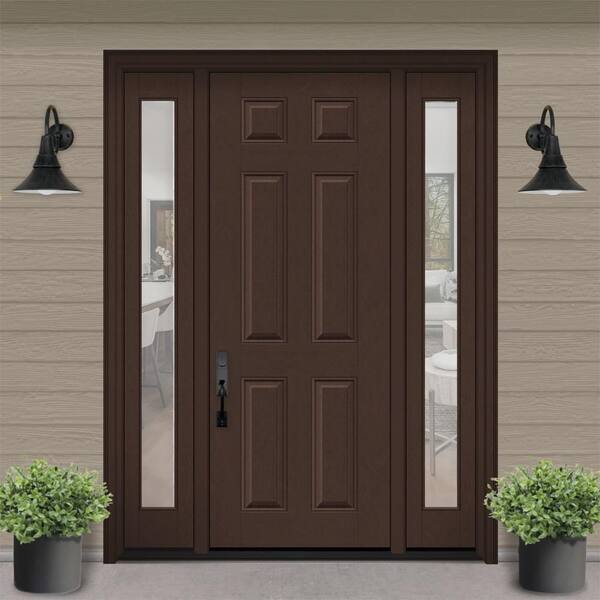 Regency 64 in. x 96 in. 6-Panel RHIS Chestnut Stain Mahogany Fiberglass Prehung Front Door w/Clear 12 in. SLs 6-9/16