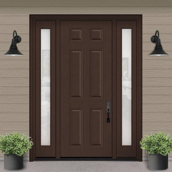 Regency 64 in. x 96 in. 6-Panel RHIS Onyx Stain Mahogany Fiberglass Prehung Front Door w/Rain 12 in. SLs 4-9/16