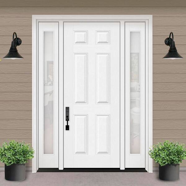 Regency 64 in. x 96 in. 6-Panel RHIS Unfinished White Mahogany Fiberglass Prehung Front Door w/Obscure 12 in. SLs 6-9/16