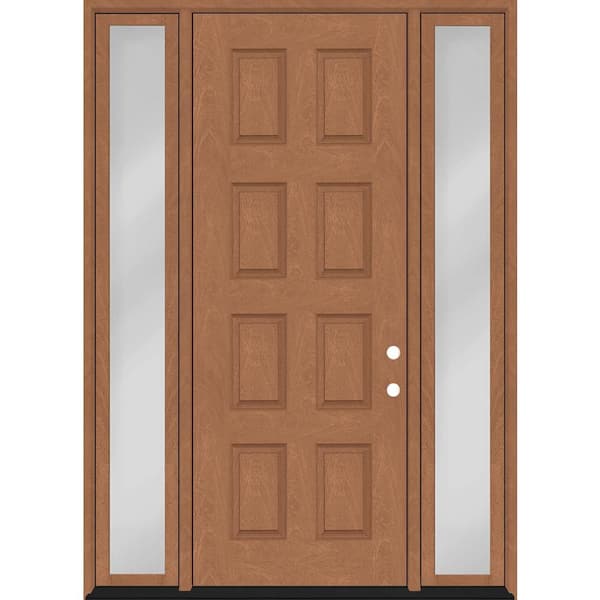 Regency 64 in. x 96 in. 8-Panel LHIS AutumnWheat Stain Mahogany Fiberglass Prehung Front Door w/Dbl 12in. Sidelites