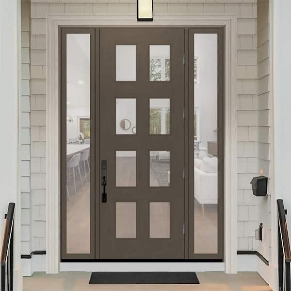 Regency 64 in. x 96 in. 8L Modern Clear Glass LHOS Ashwood Stain Fiberglass Prehung Front Door w/Clear12in. SLs 6-9/16