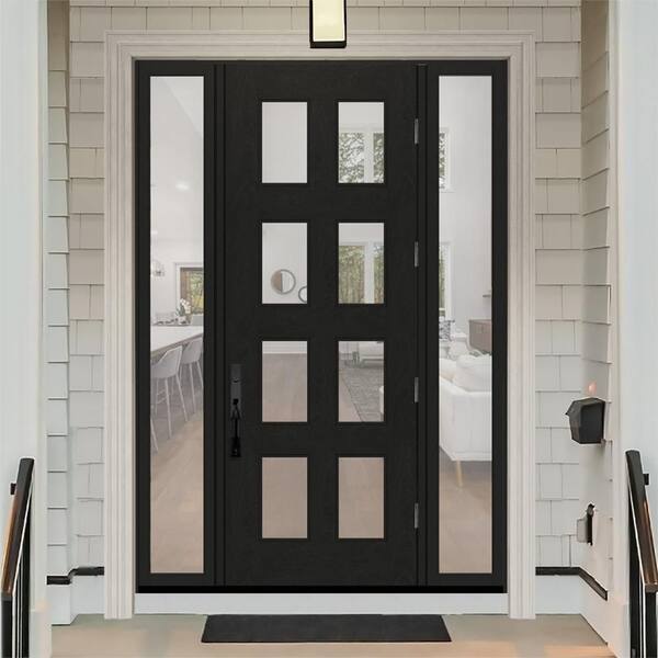 Regency 64 in. x 96 in. 8L Modern Clear Glass LHOS Onyx Stain Fiberglass Prehung Front Door w/Clear12in. SLs 6-9/16