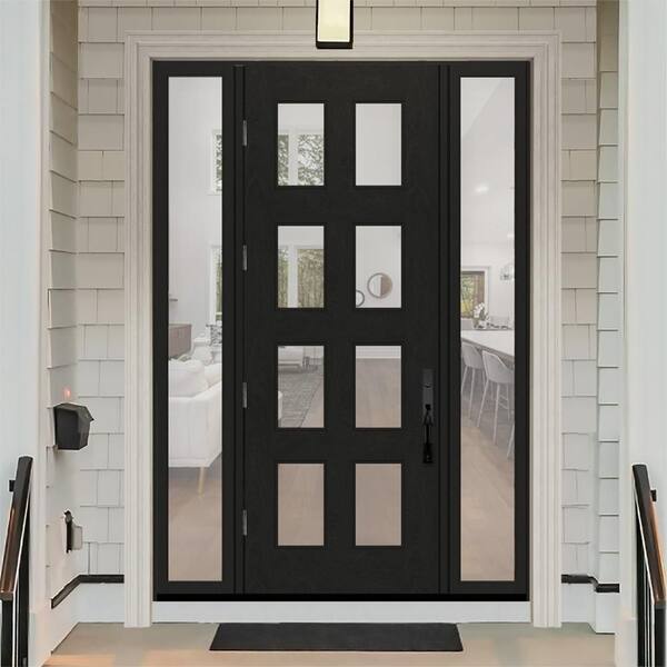 Regency 64 in. x 96 in. 8L Modern Clear Glass RHOS Onyx Stain Fiberglass Prehung Front Door w/Clear12in. SLs 6-9/16