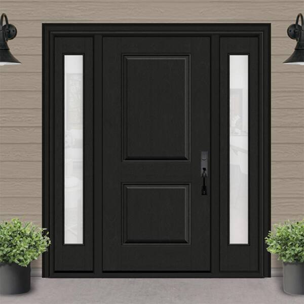 Regency 68 in. x 80 in. 2P Squaretop LHIS Onyx Stain Mahogany Fiberglass Prehung Front Door with Obscure14in. SLs 4-9/16