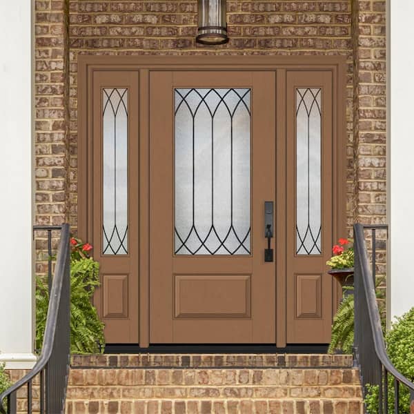 Regency 68 in. x 80 in. 3/4 Lite Decorative Glass LHIS AutumWheat Mahogany Fiberglass Prehung Front Door Db 14 in. SL