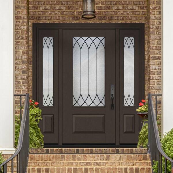 Regency 68 in. x 80 in. 3/4 Lite Spire Decorative Glass LHIS Hickory Mahogany Fiberglass Prehung Front Door 14 in. SL