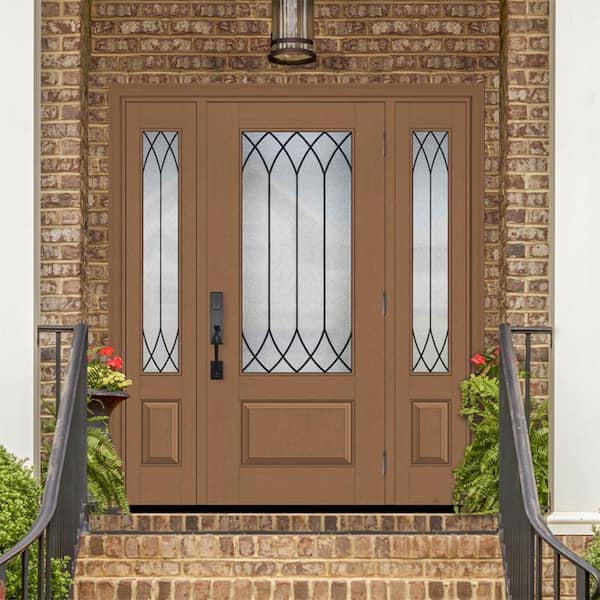 Regency 68 in. x 80 in. 3/4L Spire Decorative Glass LHOS Unfinished White Fiberglass Prehung Front Door w/Dbl 14 in. SL