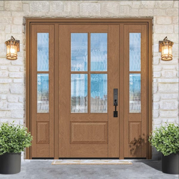 Regency 68 in. x 80 in. 3/4Lite 4SDL Oasis Deco Glass LHIS Prefinish AutumnWht Fiberglass Prehung Front Door w/2_ 14inSL