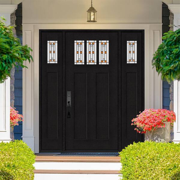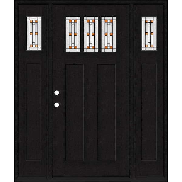 Regency 68 in. x 80 in. 3Lite Amberton Deco Glass RHIS Onyx Stain Fir Fiberglass Prehung Front Door w/Dbl 14in.SL