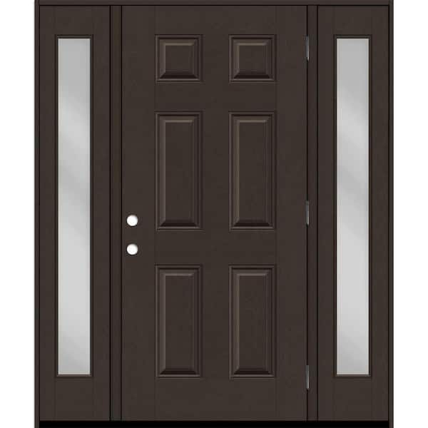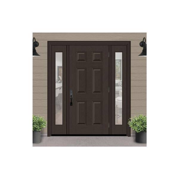 Regency 68 in. x 80 in. 6 Panel LHOS Hickory Stain Mahogany Fiberglass Prehung Front Door with Clear 14 in. SLs 6-9/16