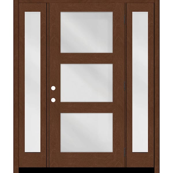 Regency 68 in. x 80 in. Modern 3-Lite Equal Clear Glass LHOS Chestnut Mahogany Fiberglass Prehung Front Door 14 in. SL
