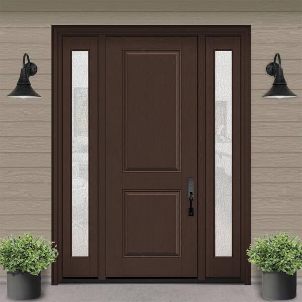 Regency 68 in. x 96 in. 2P Squaretop LHIS Chestnut Stain Mahogany Fiberglass Prehung Front Door w/Rain 14 in. SLs 4-9/16