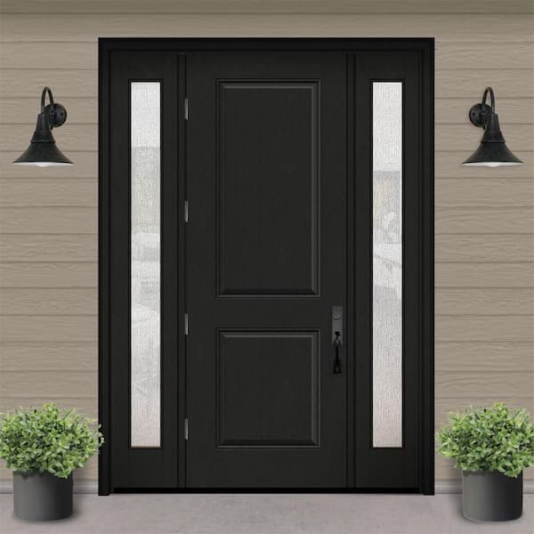 Regency 68 in. x 96 in. 2P Squaretop RHOS Onyx Stain Mahogany Fiberglass Prehung Front Door with Rain 14 in. SLs 6-9/16