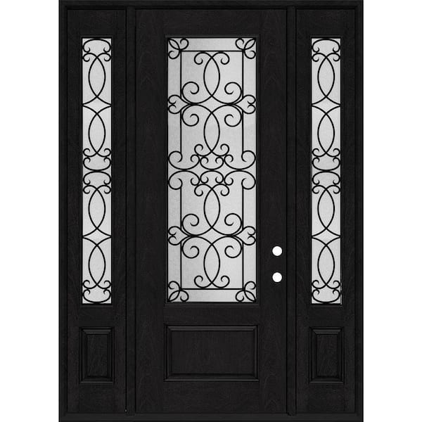 Regency 68 in. x 96 in. 3/4Lite Georgian Decorative Glass LHIS Onyx Mahogany Fiberglass Prehung Front Door DBL 14 in. SL
