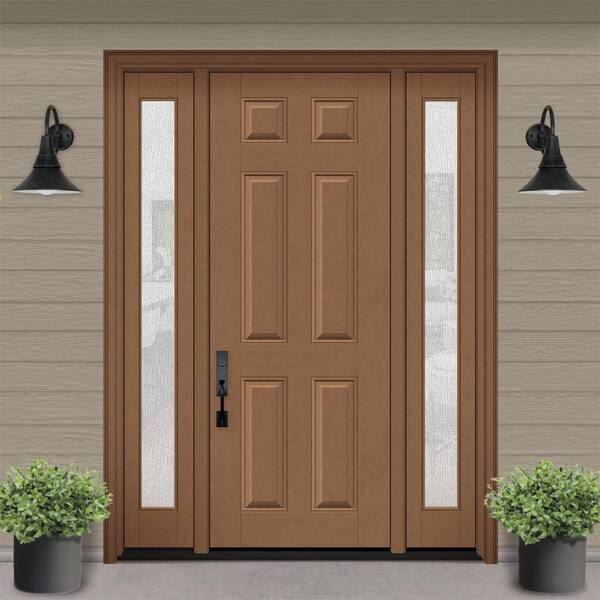 Regency 68 in. x 96 in. 6-Panel RHIS Autumn Wheat Stain Mahogany Fiberglass Prehung Front Door w/Rain 14 in. SLs 6-9/16