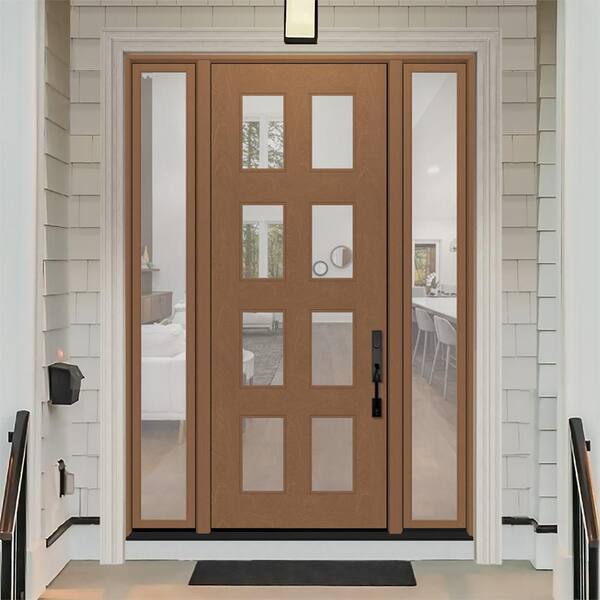 Regency 68 in. x 96 in. 8L Modern Clear Glass LHIS AutumnWheat Stain Fiberglass Prehung Front Door w/Clr14in. SLs 6-9/16