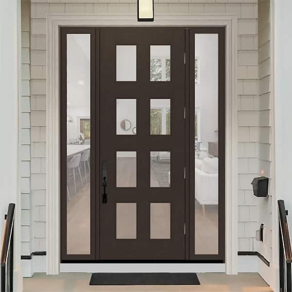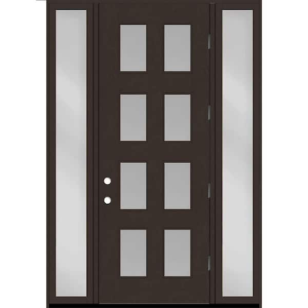 Regency 68 in. x 96 in. 8L Modern Clear Glass LHOS Hickory Stain Fiberglass Prehung Front Door w/Clear14in. SLs 6-9/16