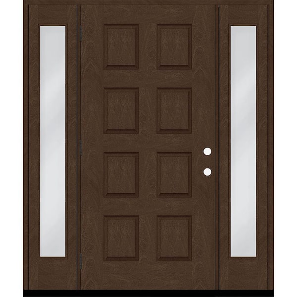 Regency 70 in. x 96 in. 8-Panel RHOS Hickory Stain Mahogany Fiberglass Prehung Front Door with Dbl 12in. Sidelites