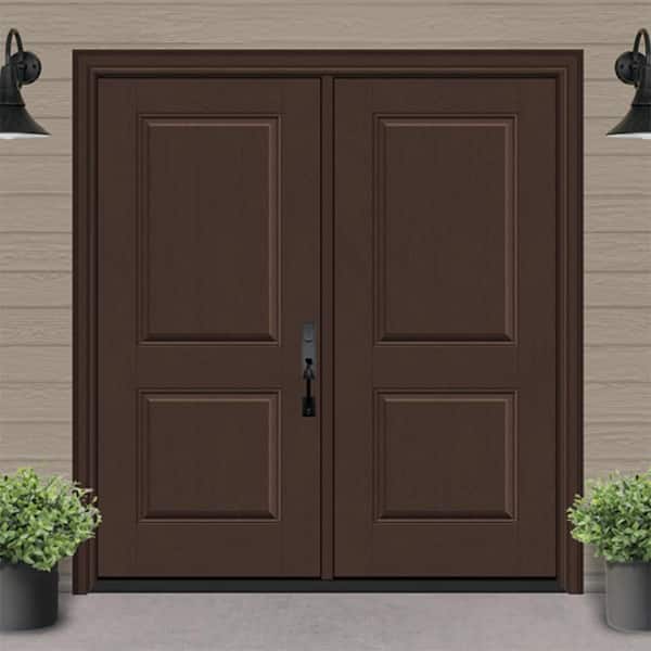 Regency 72 in. x 80 in. 2P Squaretop LHIS Chestnut Stain Fiberglass Double Prehung Front Door with 6-9/16 Jamb