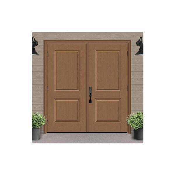 Regency 72 in. x 80 in. 2P Squaretop LHOS AutumnWheat Stain Fiberglass Double Prehung Front Door with 4-9/16 Jamb