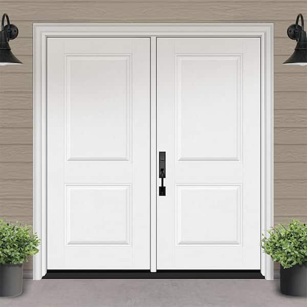 Regency 72 in. x 80 in. 2P Squaretop RHIS Unfinished White Fiberglass Double Prehung Front Door with 4-9/16 Jamb