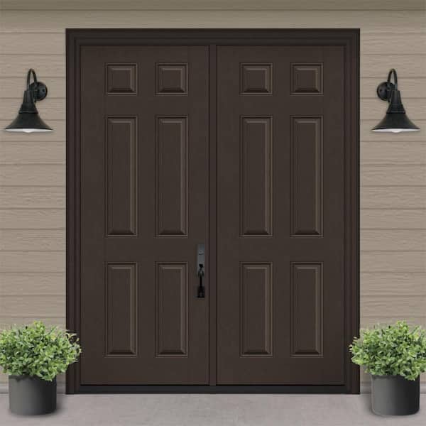 Regency 72 in. x 80 in. 6 Panel LHIS Hickory Stain Mahogany Fiberglass Double Prehung Front Door with 4-9/16 Jamb