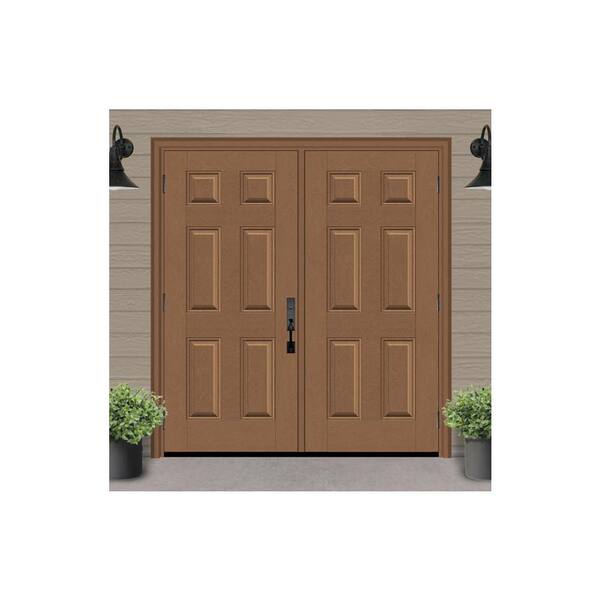 Regency 72 in. x 80 in. 6 Panel RHOS AutumnWheat Stain Mahogany Fiberglass Double Prehung Front Door with 6-9/16 Jamb