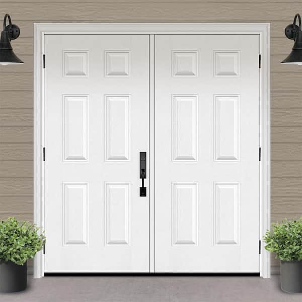 Regency 72 in. x 80 in. 6 Panel RHOS Unfinished White Mahogany Fiberglass Double Prehung Front Door with 4-9/16 Jamb