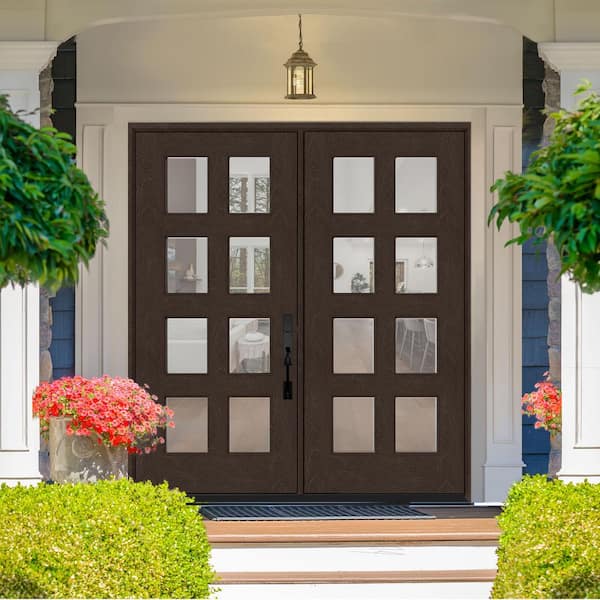 Regency 72 in. x 80 in. 8L Modern Clear Glass LHIS Hickory Stained Fiberglass Double Prehung Front Door with 6 in. Jamb