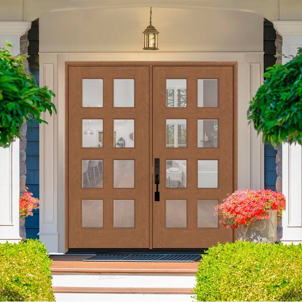 Regency 72 in. x 80 in. 8L Modern Clear Glass RHIS Autumn Wheat Stained Fiberglass Double Prehung Front Door w/6 in.Jamb