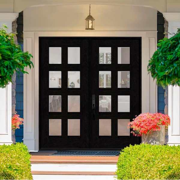 Regency 72 in. x 80 in. 8L Modern Clear Glass RHIS Onyx Stained Fiberglass Double Prehung Front Door with 6 in. Jamb