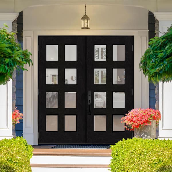 Regency 72 in. x 80 in. 8L Modern Clear Glass RHOS Onyx Stained Fiberglass Double Prehung Front Door with 4 in. Jamb
