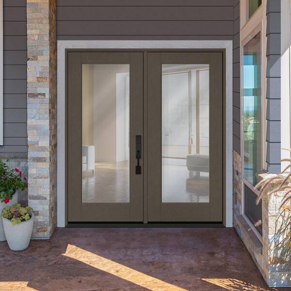 Regency 72 in. x 80 in. Full Lite Clear Glass Ashwood LHIS Stained Fiberglass Retro Patio Door with 4 in. Jamb