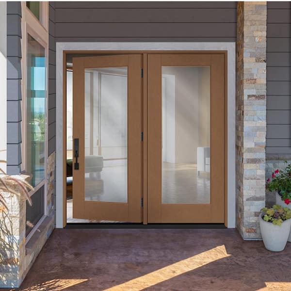 Regency 72 in. x 80 in. Full Lite Clear Glass AutumnWheat RH CenterHinged Stained Fiberglass Retro Patio Door w/4"Jamb