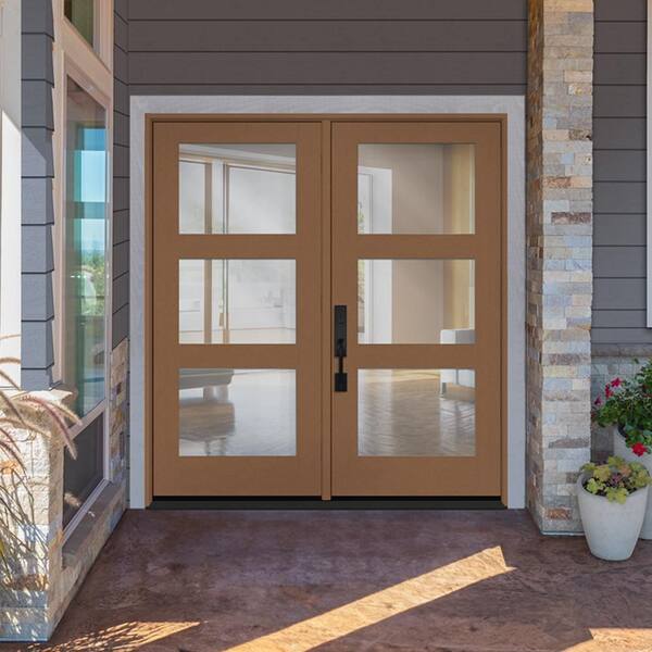 Regency 72 in. x 80 in. Modern 3L Equal Clear Glass Autumn Wheat RHIS Stained Fiberglass Retro Patio Door with 4" Jamb