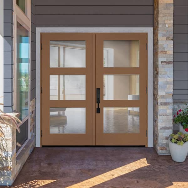 Regency 72 in. x 80 in. Modern 3L Equal Clear Glass AutumnWheat LHOS Stained Fiberglass Retro Patio Door w/6"Jamb