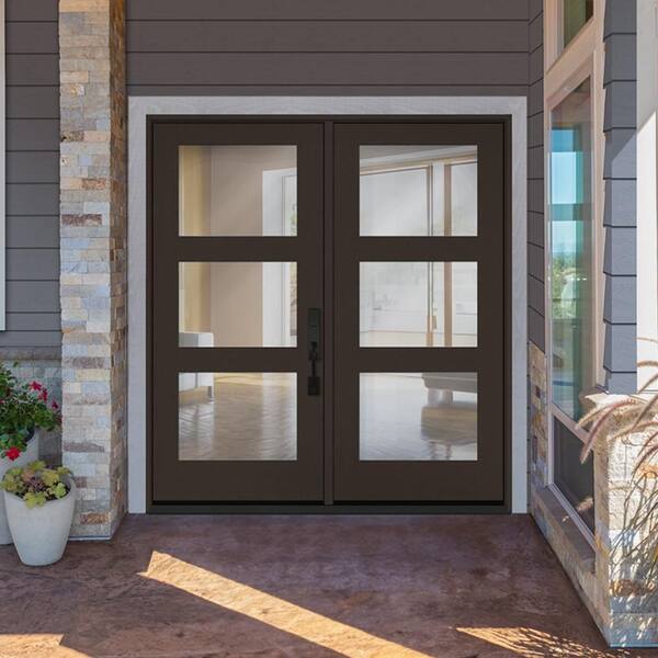 Regency 72 in. x 80 in. Modern 3L Equal Clear Glass Hickory LHIS Stained Fiberglass Retro Patio Door with 4 in. Jamb