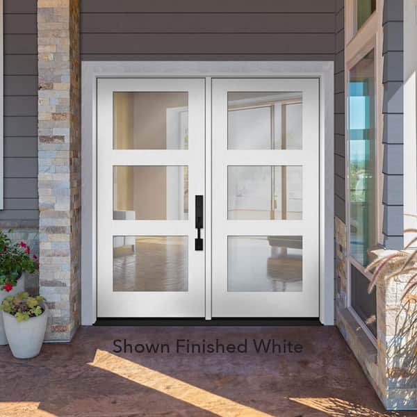Regency 72 in. x 80 in. Modern 3L Equal Clear Glass LHIS Unfinished White Fiberglass Retro Patio Door with 4 in. Jamb