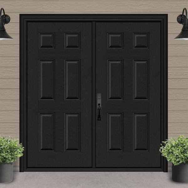 Regency 72 in. x 96 in. 6 Panel RHIS Onyx Stain Mahogany Fiberglass Double Prehung Front Door with 6-9/16 Jamb