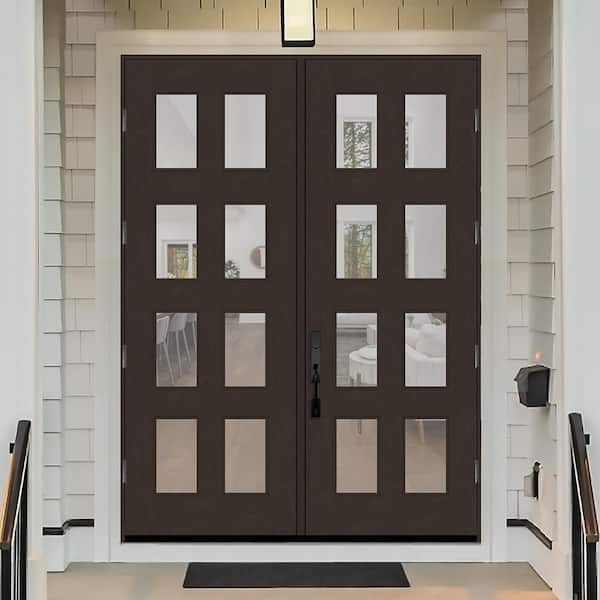 Regency 72 in. x 96 in. 8L Modern Clear Glass RHIS Hickory Stained Fiberglass Double Prehung Front Door w/ 4in. Jamb