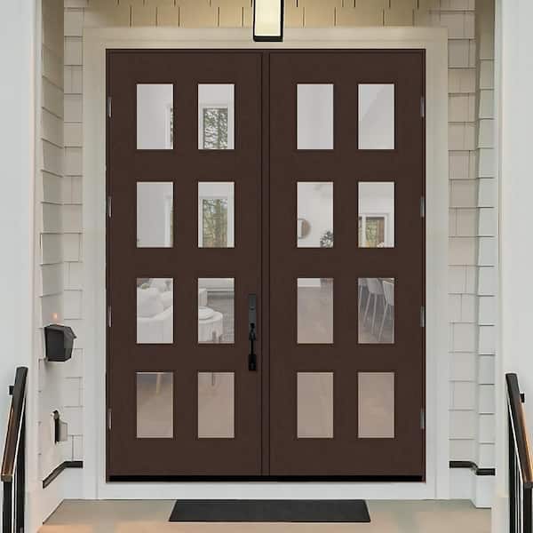 Regency 72 in. x 96 in. 8L Modern Clear Glass RHOS Chestnut Stained Fiberglass Double Prehung Front Door w/ 6 in. Jamb