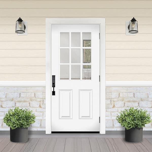 Reliant 32 in. x 80 in. 2P Half Lite 9L SDL Clear Glass LHOS White Finish Fiberglass Prehung Front Door 4-9/16 Jamb